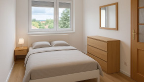 Mesačné náklady na bývanie sú vo výške 128,-€ (z toho správa domu predstavuje 48,- €, elektrina 28,- € a plyn 52,- €.